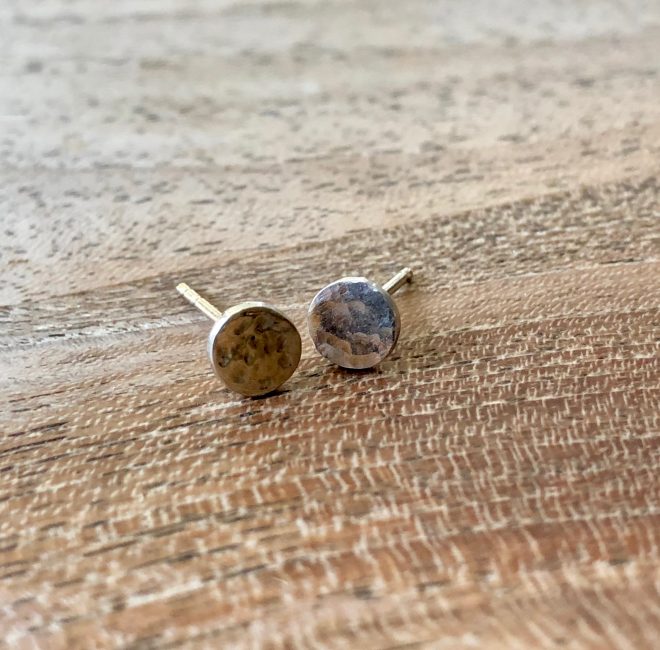 Simple, comfortable, gently hammered earrings that add a touch of glimmer to your ears every day.
